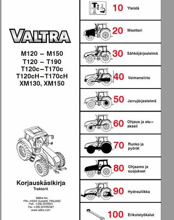Valtra T121c-T171c, T121h-T191h sekä T121eLs-T191Ls korjaamokäsikirja (pdf).