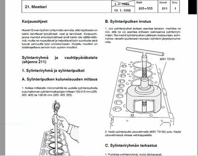 Valmet 205 255 305 355 365 405 455 465 555 565 665 865 600 700 800 900 415M sekä Valtra A75 A85 ja A95 korjaamokäsikirja (pdf).